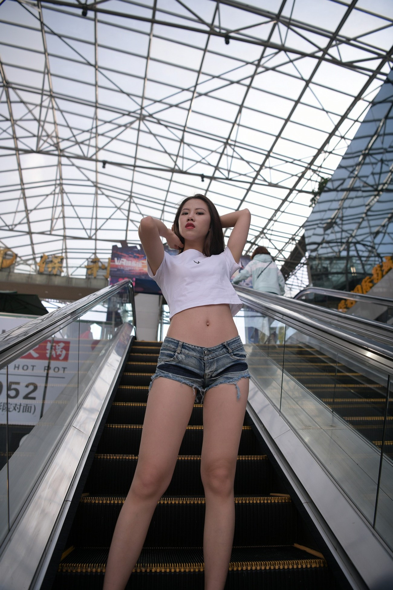 魔镜街拍-粉红牛仔热裤小姐姐1