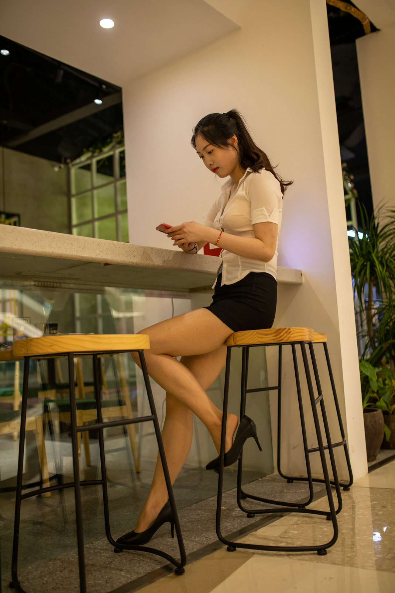 魔镜街拍-夜色中的亮丝包臀裙美女