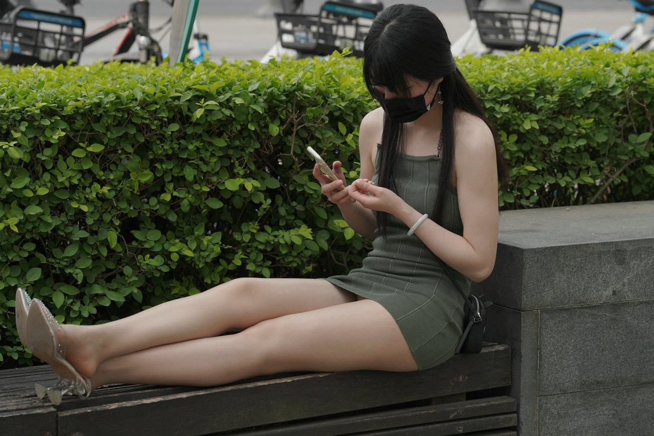 魔镜街拍-午后的咖啡&绿色包臀裙肉丝