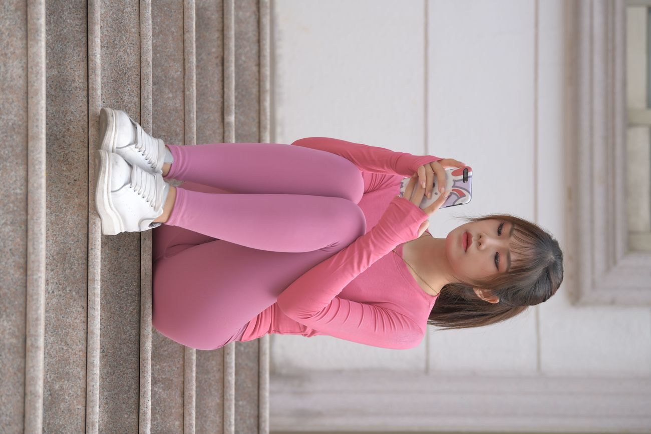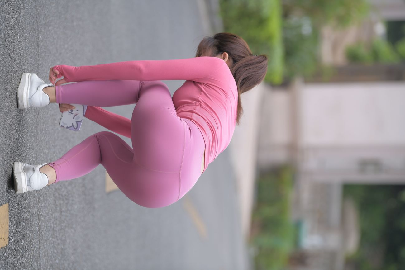 魔镜街拍-粉衣瑜伽裤小姐姐1