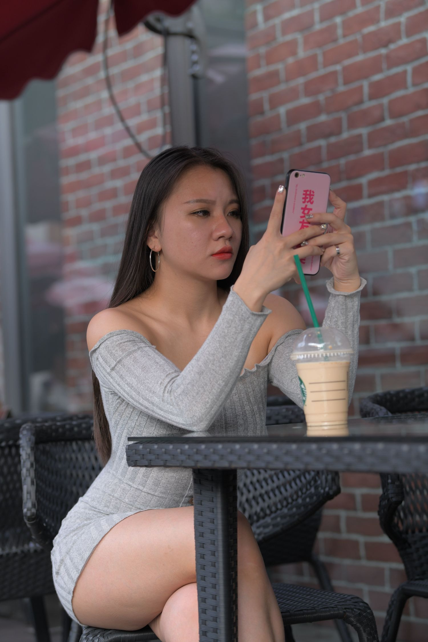 魔镜街拍-咖啡色丝袜高跟美女逛商场